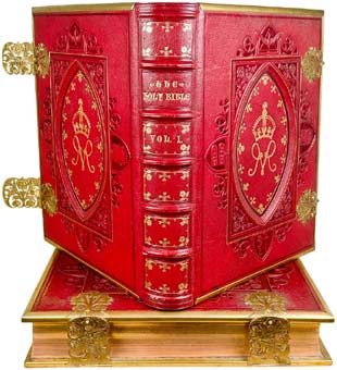 This Bible was published by the Illustrated Bible Society of London in 1900. Designed by Walter Crane, the Bible is illustrated throughout with 100 full-page prints by members of the Royal Academy. |