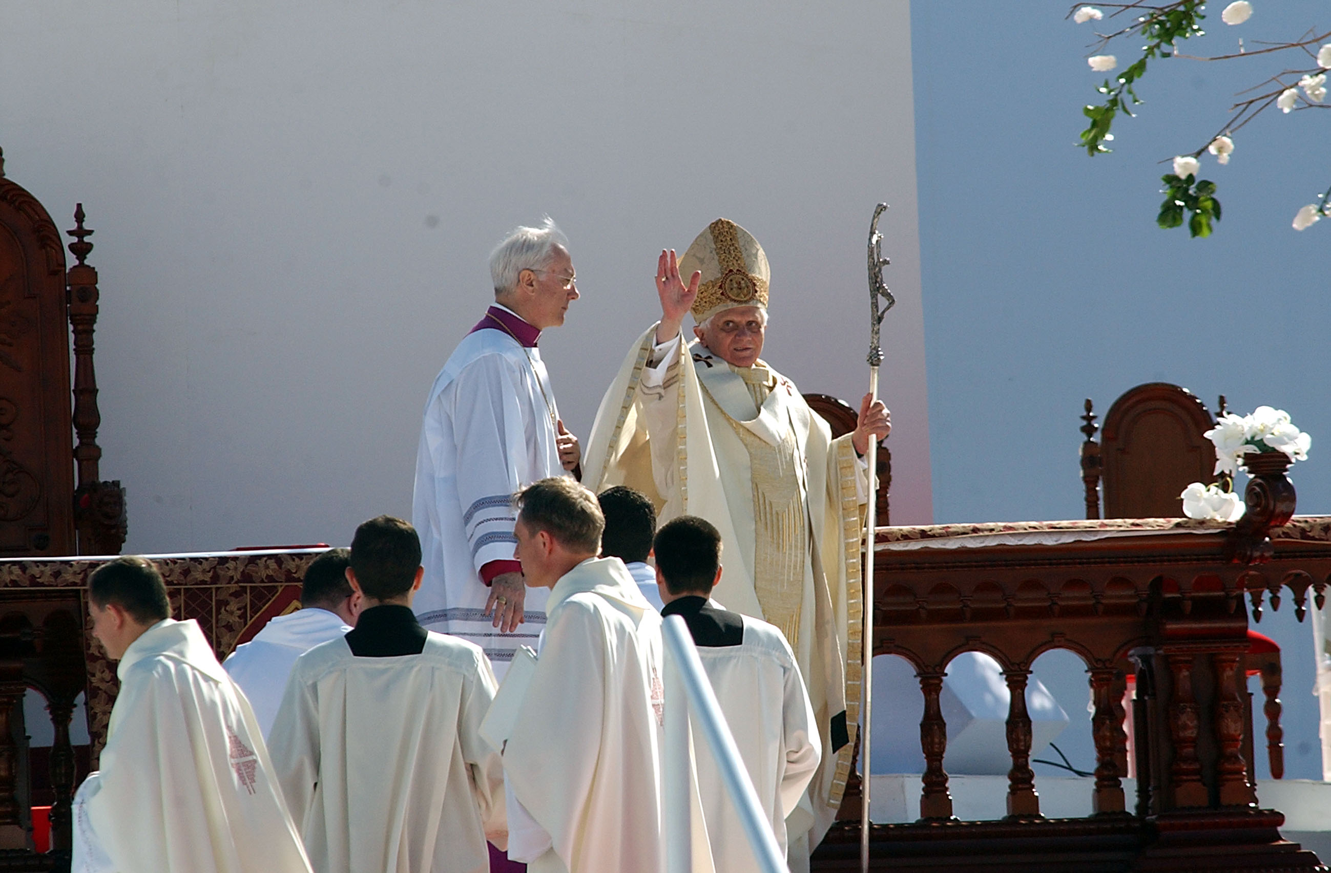 Pope Benedict XVI in a Mercedes-Benz popemobile in São Paulo, Brazil Benedict travelled extensively during the first three years of his papacy. In addition to his travels within Italy, Pope Benedict XVI made two visits to his homeland, Germany, one for World Youth Day and another to visit the towns of his childhood. He also visited Poland and Spain, where he was enthusiastically received. His visit to Turkey, an overwhelmingly Muslim nation, was initially overshadowed by the controversy about a lecture he had given at Regensburg. His visit was met by nationalist and Islamic protesters and was placed under unprecedented security measures. However, the trip went ahead and Benedict made a joint declaration with Ecumenical Patriarch Bartholomew I in an attempt to begin to heal the rift between the Catholic and Orthodox churches. In 2007, Pope Benedict visited Brazil in order to address the Bishops' Conference there and canonize Friar Antônio Galvão, an 18th century Franciscan. In June 2007, Benedict made a personal pilgrimage and pastoral visit to Assisi, the birthplace of St. Francis. In September, Benedict undertook a three-day visit to Austria, during which he joined Vienna's Chief Rabbi, Paul Chaim Eisenberg, in a memorial to the 65,000 Viennese Jews who perished in Nazi death camps. During his stay in Austria, he also celebrated Mass at the Marian shrine Mariazell and visited Heiligenkreuz Abbey. In April 2008, Pope Benedict XVI made his first visit to the United States since becoming pope. He arrived in Washington, DC where he was formally received at the White House and met privately with U.S. President George W. Bush. While in Washington, the pope addressed representatives of US Catholic universities, met with leaders of other world religions, and celebrated Mass at the Washington Nationals' baseball stadium with 47,000 people. The Pope also met privately with victims of sexual abuse by priests. The Pope travelled to New York where he addressed the United Nations General Assembly. Also while in New York, the Pope celebrated Mass at St. Patrick's Cathedral, met with disabled children and their families, and attended an event for Catholic youth, where he addressed some 25,000 young people in attendance. On the final day of the Pope's visit, he visited the World Trade Center site and later celebrated Mass at Yankee Stadium.