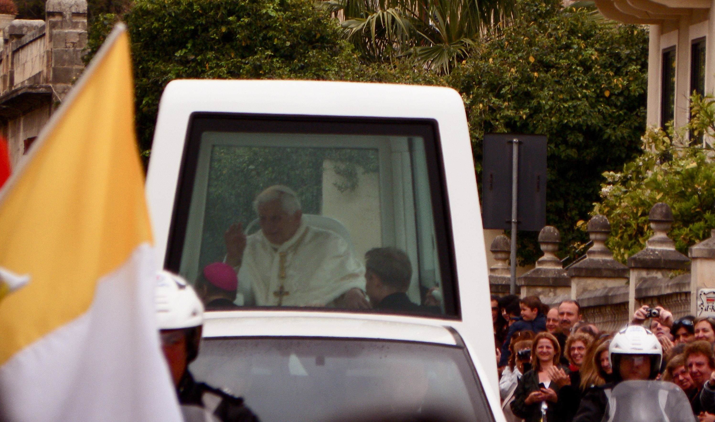 Pope Benedict XVI celebrates his 81st birthday with U.S. President George W. Bush and his wife, Laura. The White House, Washington D.C. In July 2008, the Pope travelled to Australia to attend World Youth Day 2008 in Sydney. On 19 July, in St. Mary's Cathedral, he made an apology for child sex abuse perpetrated by the clergy in Australia. On 13 September 2008, at an outdoor Paris Mass attended by 250,000 people, Pope Benedict XVI condemned the modern materialism – the world's love of power, possessions and money as a modern-day plague, comparing it to paganism. In 2009, he visited Africa (Cameroon and Angola) for the first time as pope. During his visit, he suggested that altering sexual behavior was the answer to Africa's AIDS crisis, and urged Catholics to reach out and convert believers in sorcery. He visited the Middle East (Jordan, Israel and Palestine) in May 2009. Pope Benedict's main arena for pastoral activity was the Vatican itself, his Christmas and Easter homilies and Urbi et Orbi are delivered from St Peter's Basilica. The Vatican is also the only regular place where Benedict XVI traveled via motor without the protective bulletproof case common to most popemobiles. Despite the more secure setting Pope Benedict was victim to security risks several times inside Vatican City. On Wednesday, 6 June 2007 during his General Audience a man leapt across a barrier, evaded guards and nearly mounted the Pope's vehicle, although he was stopped and Benedict seemed to be unaware of the event. On Thursday, 24 December 2009, while Pope Benedict was proceeding to the altar to celebrate Christmas Eve Mass at St Peter's Basilica, a woman later identified as 25-year-old Susanna Maiolo, who holds Italian and Swiss citizenships, jumped the barrier and grabbed the Pope by his vestments and pulled him to the ground. The 82-year-old fell but was assisted to his feet and he continued to proceed towards the altar to celebrate Mass. Roger Etchegaray, 87, the vice-dean of the College of Cardinals, fell also and suffered a hip fracture. Italian police reported that the woman had previously attempted to accost the Pope at the previous Christmas Eve Mass, but was prevented from doing so. In his homily, Pope Benedict forgave Susanna Maiolo and urged the world to "wake up" from selfishness and petty affairs, and find time for God and spiritual matters. Between 17 and 18 April, Pope Benedict made an Apostolic Journey to the Republic of Malta. Following meetings with various dignitaries on his first day on the island, 50,000 people gathered in a drizzle for Papal Mass on the granaries in Floriana. The Pope also met with the Maltese youth at the Valletta Waterfront, where an estimated 10,000 young people turned up to greet him. During his visit the Pope was moved to tears while expressing his shame at cases of abuse on the island during a 20-minute meeting with victims. Pope Benedict XVI in Balzan, Malta Sexual abuse in the Catholic ChurchPrior to 2001, the primary responsibility for investigating allegations of sexual abuse and disciplining perpetrators rested with the individual dioceses. In 2001, Ratzinger convinced John Paul II to put the Congregation for the Doctrine of the Faith in charge of all investigations and policies surrounding sexual abuse in order to combat such abuse more efficiently. According to John L. Allen, Jr., Ratzinger in the following years "acquired a familiarity with the contours of the problem that virtually no other figure in the Catholic Church can claim" and "driven by that encounter with what he would later refer to as 'filth' in the Church, Ratzinger seems to have undergone something of a 'conversion experience' throughout 2003 – 04. From that point forward, he and his staff seemed driven by a convert's zeal to clean up the mess". In his role as Head of the CDF, he "led important changes made in Church law: the inclusion in canon law of internet offences against children, the extension of child abuse offences to include the sexual abuse of all under 18, the case by case waiving of the statute of limitation and the establishment of a fast-track dismissal from the clerical state for offenders." As the Head of the CDF, Ratzinger developed a reputation for handling these cases. According to Charles J. Scicluna, a former prosecutor handling sexual abuse cases, "Cardinal Ratzinger displayed great wisdom and firmness in handling those cases, also demonstrating great courage in facing some of the most difficult and thorny cases, sine acceptione personarum (without exceptions)". One of the cases Ratzinger pursued involved Father Marcial Maciel Degollado, a Mexican priest and founder of the Legion of Christ, who had been accused repeatedly of sexual abuse. Biographer Andrea Tornielli suggested that Cardinal Ratzinger had wanted to take action against Marcial Maciel Degollado, but that John Paul II and other high-ranking officials, including several cardinals and notably the Pope's influential secretary Stanisław Dziwisz, prevented him from doing so. According to Jason Berry, Angelo Sodano "pressured" Cardinal Ratzinger, who was "operating on the assumption that the charges were not justified", to halt the proceedings against Maciel in 1999 When Maciel was honored by the Pope in 2004, new accusers came forward and Cardinal Ratzinger "took it on himself to authorize an investigation of Maciel" After Ratzinger became pope he began proceedings against Maciel and the Legion of Christ that forced Maciel out of active service in the Church. On 1 May 2010 the Vatican issued a statement denouncing Maciel's "very serious and objectively immoral acts", which were "confirmed by incontrovertible testimonies" and represent "true crimes and manifest a life without scruples or authentic religious sentiment." Pope Benedict also said he would appoint a special commission to examine the Legionaries’ constitution and open an investigation into its lay affiliate Regnum Christi. Cardinal Christoph Schönb