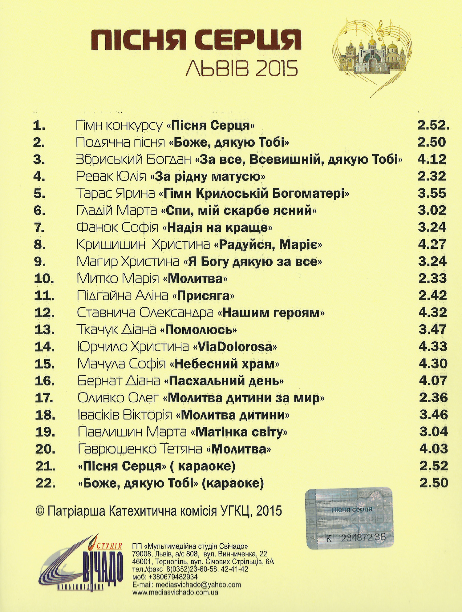 Пісня серця (2015) Християнська музика: Пісня серця (2015)